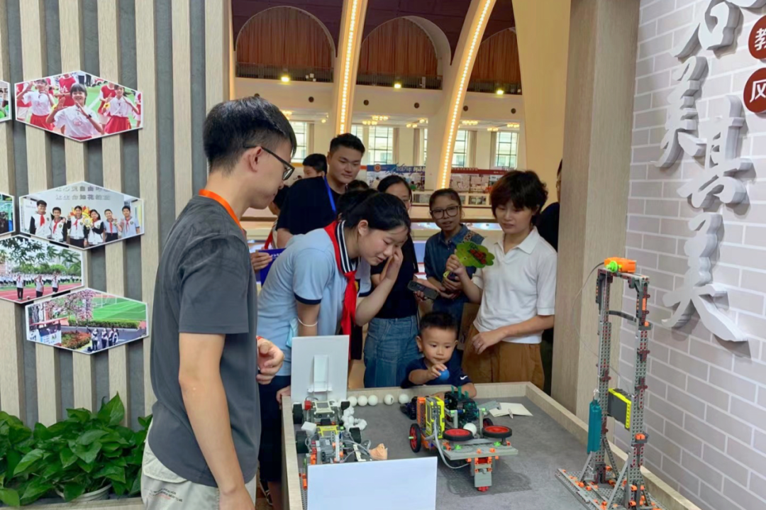 活动现场,每一位工作人员脸上都洋溢着温暖、热情的笑容。学生志愿者积极帮助观众进行项目体验,老师们则化身导游,为来往的观众们了解学校概况、介绍特色活动体验项目,让体验者乘兴而来,尽兴而归。本次展会内容丰富,形式多样,学校展台吸引近万人次驻留围观,现场气氛欢快热烈。科技助力“五育融合”沉浸式体验,观众们通过游览观赏、亲身实践体验,感受到学校的实践成果,纷纷为学校扫码点赞。