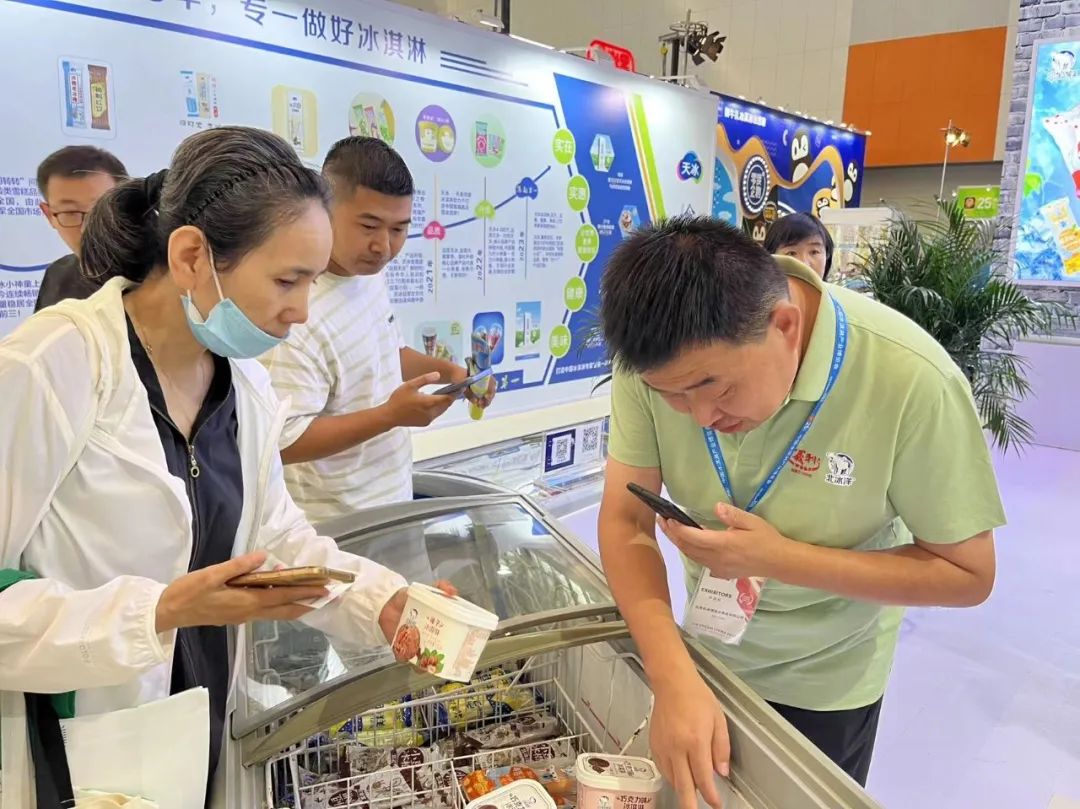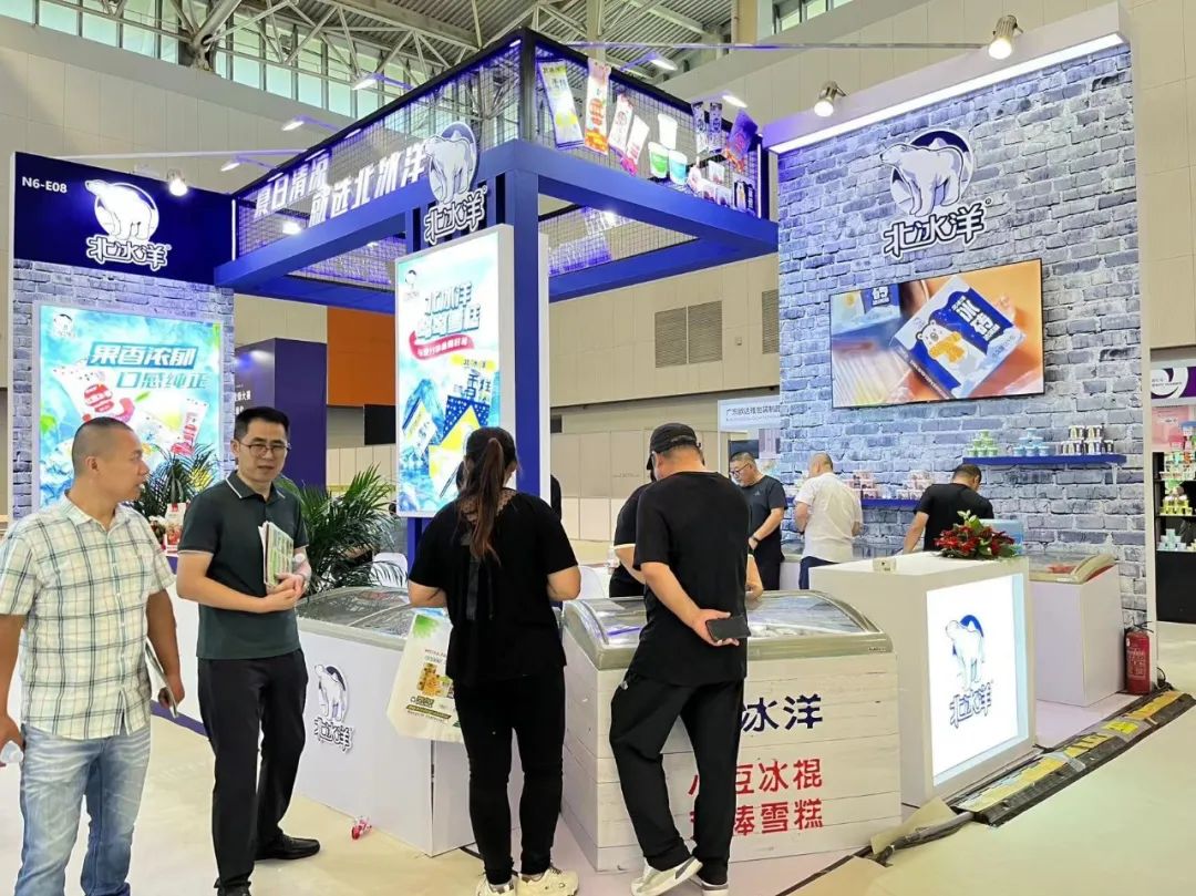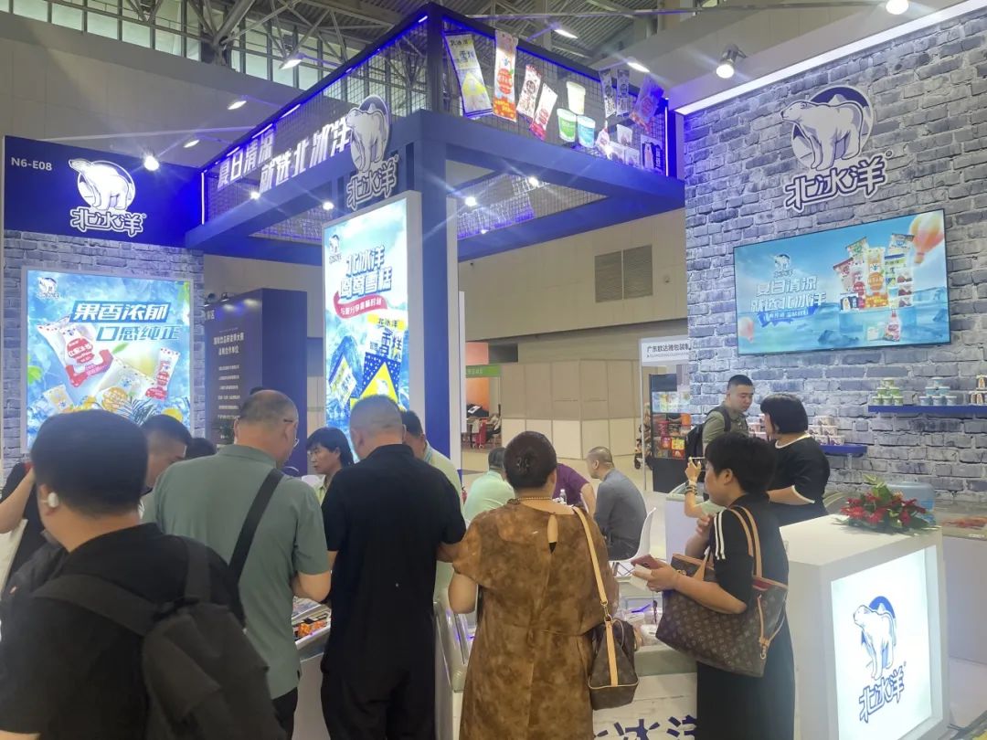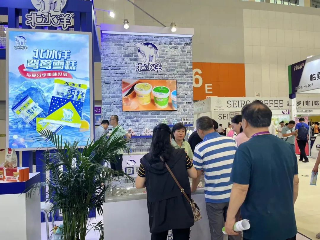 人潮涌动,大家密集围在北冰洋的展位上,热烈探讨北冰洋冰品的产品。
