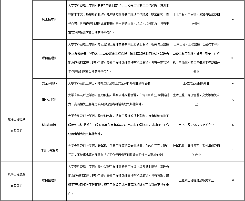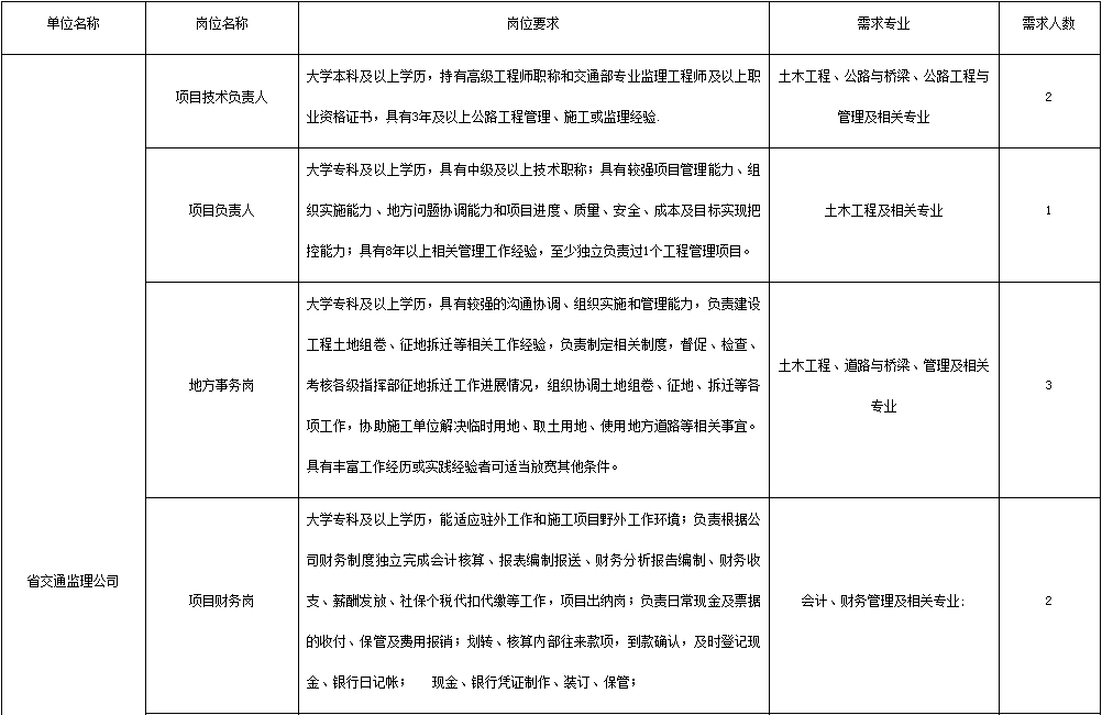 为加强公司人才队伍建设、提高公司业务,根据公开、公正、择优的原则,现公开招聘岗位具体如下:
