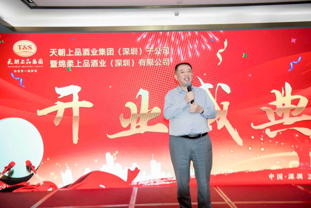 9月20日,经过精心筹备,天朝上品集团深圳子公司——绵柔上品酒业(深圳)有限公司正式开业,中国华商会会长刘平先生,深圳市连平商会会长曾辉强先生,佛山市工商联主席吴映明先生,广州市连平商会秘书长伍洲先生,深圳市东源商会秘书长张珊珊女士,第73届世界小姐组委会副主席潘昭先主席,东莞市灿煜金属制品有限公司董事长高永彬先生等商会朋友莅临庆典支持,天朝上品集团董事长黄永毅及天朝上品广州、深圳专卖店负责人,绵柔上品酒业总经理吴正满及全体员工,现场嘉宾共同见证这一重要时刻。这是天朝上品加速全国市场布局的第一站,也是集团化发展的新起点,此举将更深入、更全面地打开各地市场,拓宽销售渠道,抢占绵柔酱香市场。开业仪式上,黄永毅董事长发表致辞:在这喜庆时刻,谨代表天朝上品集团全体员工向子公司开业表示祝贺,向莅临现场的所有嘉宾致以最热烈的欢迎和最真挚的感谢!天朝上品历经15年发展,先后创立柔和酱香、绵柔酱香新品类新标准,深受广大消费者喜爱。天朝上品始终致力于“给世界一瓶好酒”,为广大消费者提供高品质、高荣誉、高性价比、高附加值的绵柔酱香产品。作为天朝上品集团化发展启动后新成立的首家外省子公司,将为消费者打造一个精致、舒适的体验、消费环境,提供高品质、高性价比的产品,提供专业、贴心的服务,为社会做出更多贡献。绵柔上品酒业总经理吴正满发言,他对绵柔酱香新趋势进行了分析,希望这个平台成为天朝上品品牌展示的窗口,绵柔酱香风格体验的场所,欢迎广大消费者前来体验、感受绵柔酱香的魅力,在这里以酒会友,凝聚更多的合作伙伴共享、共赢、共富。作为天朝上品集团化发展战略后首个成立的外省子公司,绵柔上品酒业将秉持天朝上品“给世界一瓶好酒,缔造世界级品牌”初心,践行“为客户创造价值,为朋友创造财富”宗旨,不断提高服务质量,围绕集团发展战略,提供更多更好的产品和服务,让更多人喝到绵柔酱香、了解绵柔酱香、爱上绵柔酱香。