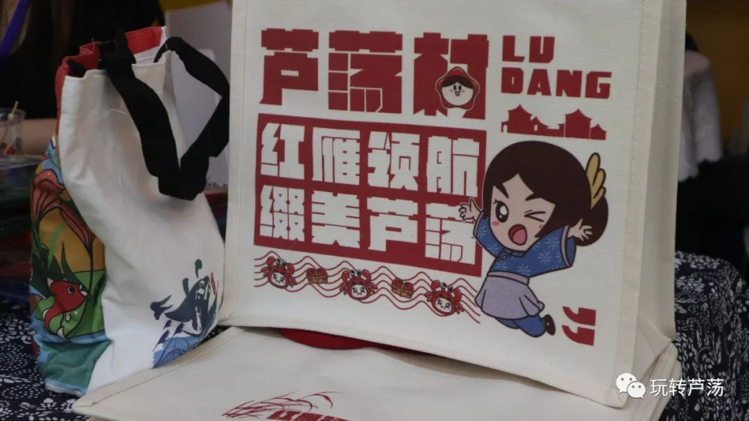 在展示区内,以“芦荡火种”为IP的各种特色文创产品令人耳目一新。“手里有钳”红木蟹钳、团扇、马克杯、帆布袋、毛毡托特包等产品无一不吸引大众的驻足,芦荡村特色农文旅项目和“芦荡学堂 红色定制”课程也引起了旅游经销平台的浓厚兴趣。