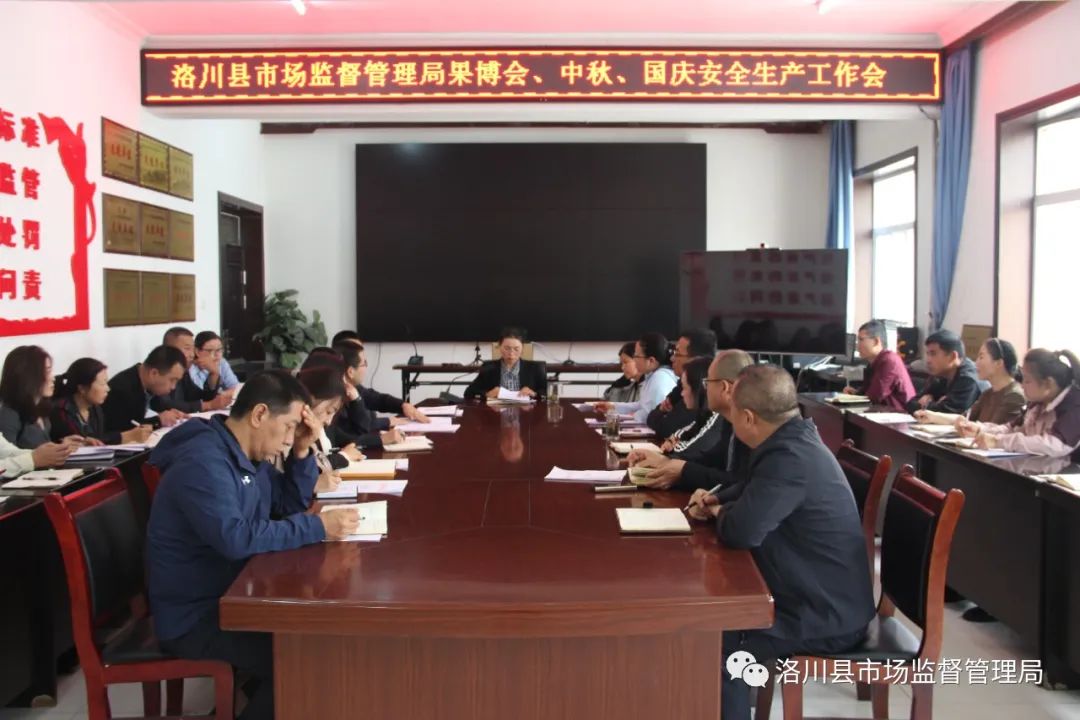 为确保果博会和“双节”期间市场安全稳定,切实守好安全底线,确保全县人民群众度过一个安全、欢乐、祥和的节日,9月22日,洛川县市场监督管理局组织召开果博会、中秋、国庆安全生产工作会,安排部署果博会及“双节”前安全大检查工作。局领导班子、下属单位负责人、各股室股长参加会议。