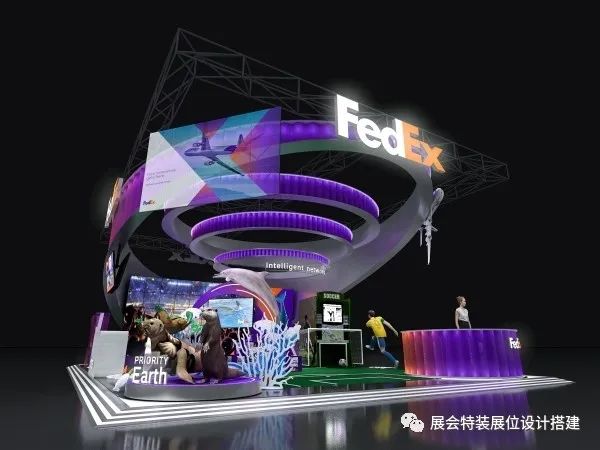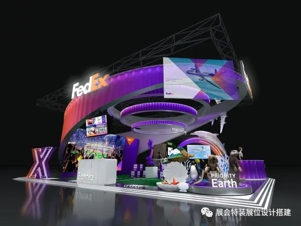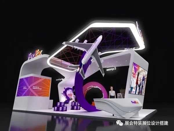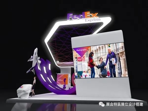 我们展览工程有限公司是中国进口博览会指定的展位设计搭建公司。在广州、深圳、上海、北京、天津、南京、成都、重庆、武汉、长沙、南宁、海南、香港等全国各主要展会城市均设有专门的展览制作工厂和专业的搭建施工团队。联邦快递的展台面积:108.75m²,展台长宽:8.7米X12.5米,展台高度:5.0米,开口方向:四面开口。
