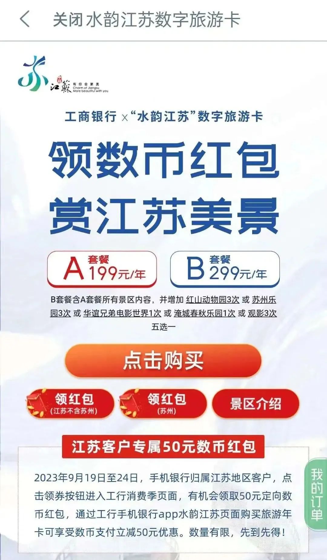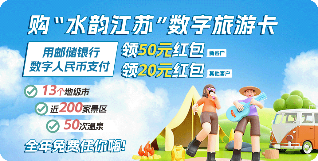 “水韵江苏”数字旅游卡二期新品正式发售,合作景区涵盖全省13市近200个主要景区,全部门票和权益总价近20000元。