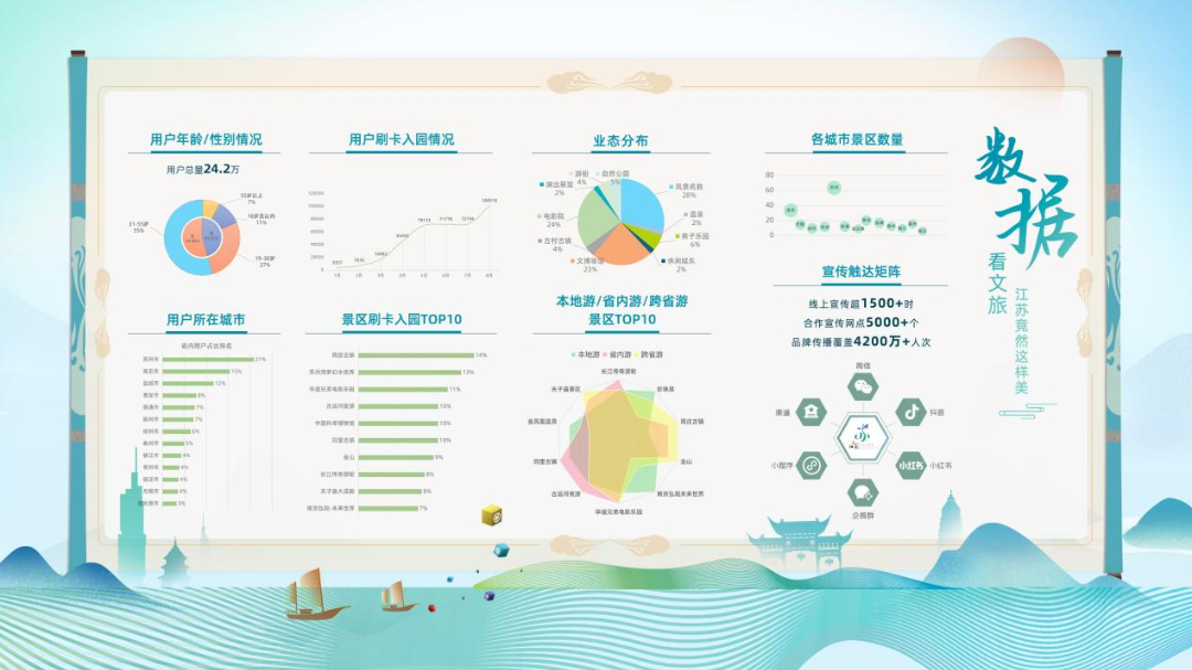 今年江苏文旅迅速复苏,“一句春不晚”、特种兵旅游、city walk让江苏文旅频频上热搜,也将江苏文旅消费推上了全国第一。数字旅游卡的大数据就直观展示了江苏人出游的热情。