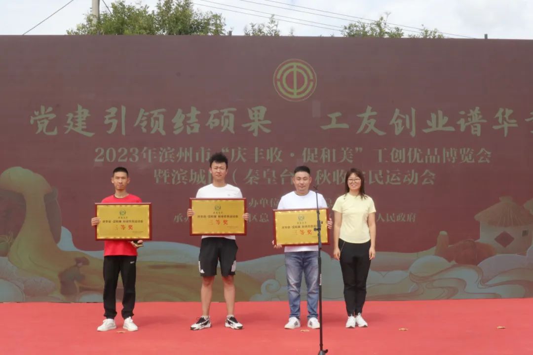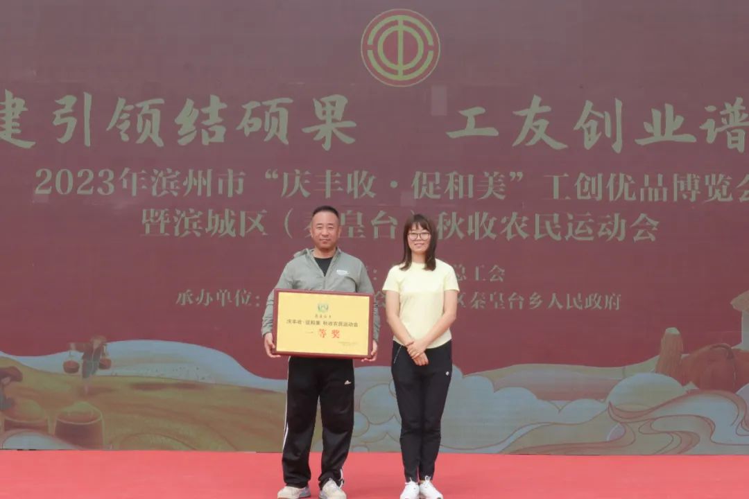 为深入贯彻落实习近平总书记关于乡村振兴工作的重要论述与中国农民丰收节的重要指示精神,全面落实市委、市政府和省总工会工作部署,做实叫响工友创业助力乡村振兴品牌,9月23日,2023年滨州市“庆丰收·促和美”工创优品博览会暨滨城区(秦皇台)秋收农民运动会在秦皇台中心学校圆满举行。