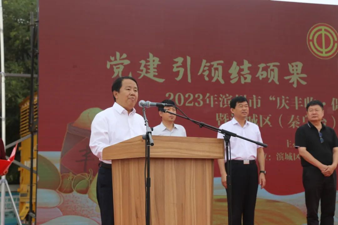 副市长杜玉杰宣布2023年滨州市“促和美·庆丰收”工创优品博览会暨滨城区(秦皇台)秋收农民运动会正式开幕。