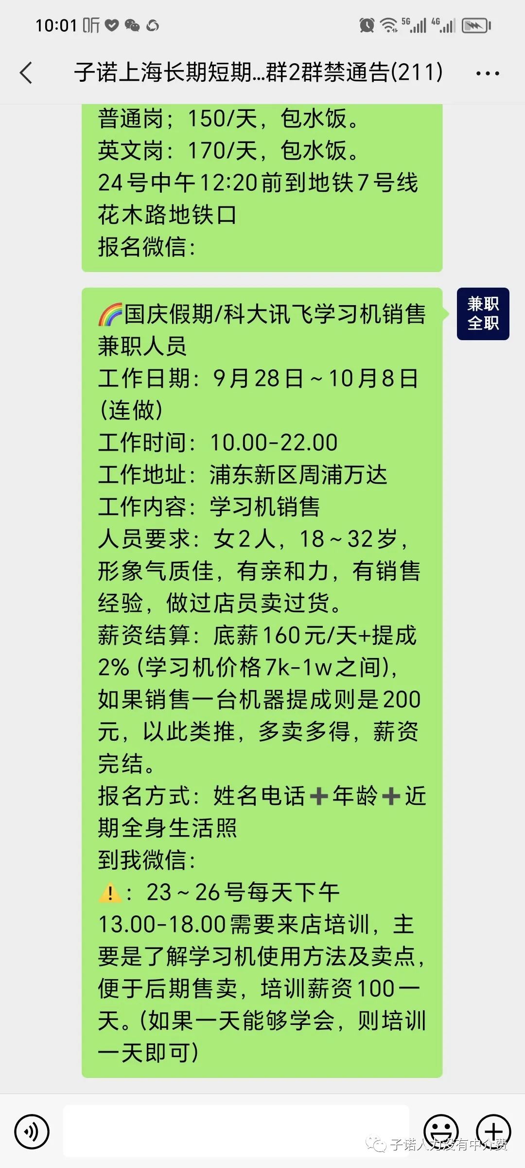 170/天,包饭。招26-27号会议协兼职10名 要求:男生,17-28岁!学生形象,或者年轻不邋遢的。服装黑裤子黑鞋!2天连做!内容:协助,引导,签到,物料管理等简单工作。非常轻松不累,时间:26号9:00-17:30 费用170/天,包饭。27号半天7:30-11:30。费用130/元。