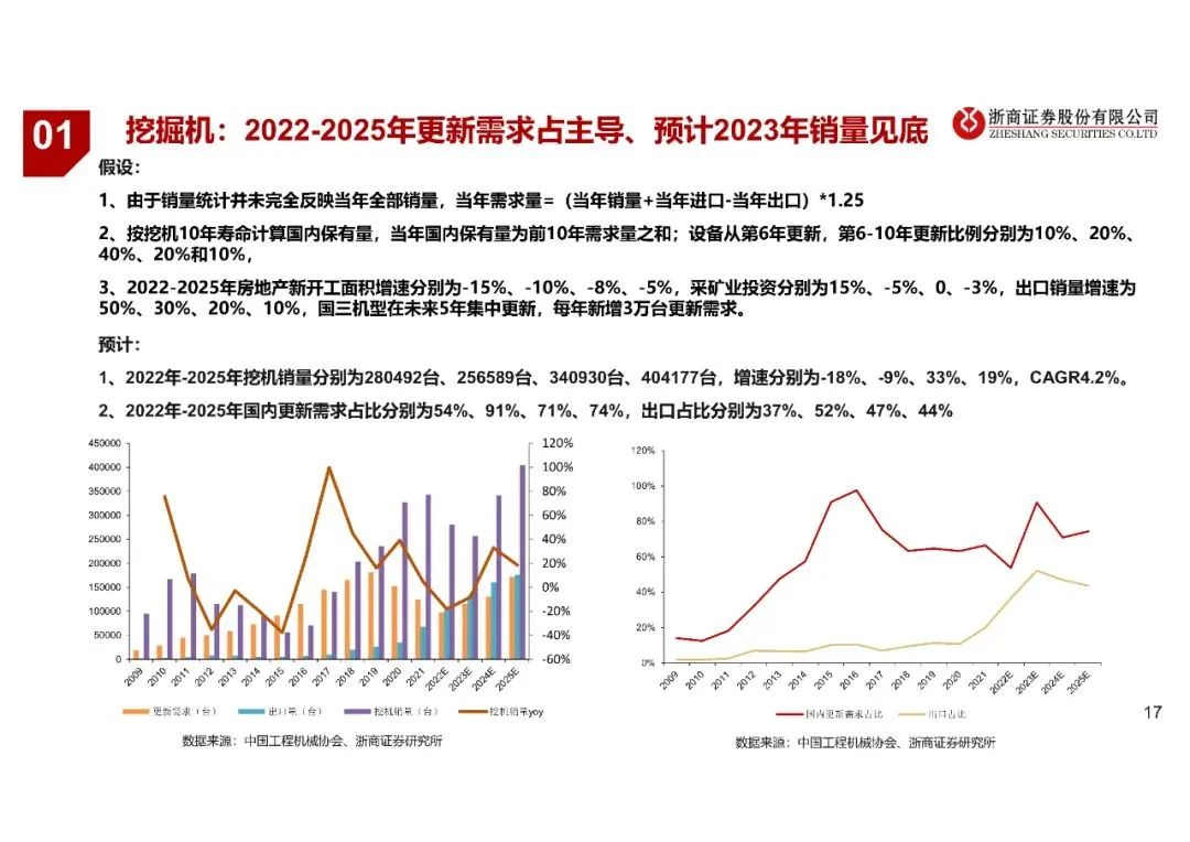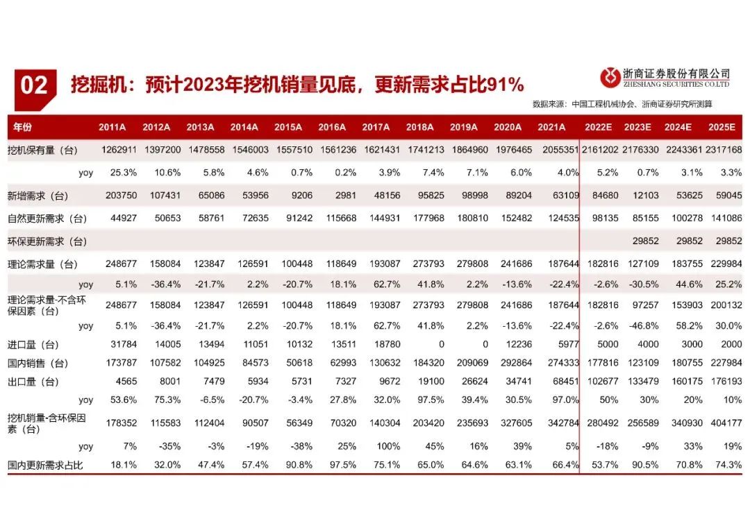 近日,浙商证券分析指出,挖掘机预计2023年销量见底,行业将逐步筑底,预期改善。