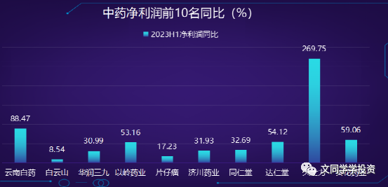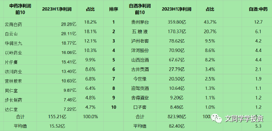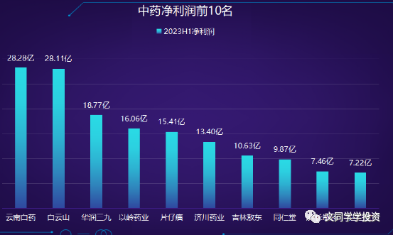 上图:云南白药与白云山上半年净利润大约28亿,排名前二。