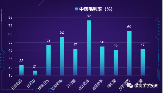 上图:云南白药由于省医药公司的拖累,毛利率仅为28%;其他公司大部分在40%以上,整体毛利率还算不错。