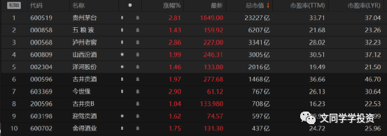 上图:白酒市值前6都超过了1000亿,茅台更是高达22913亿!