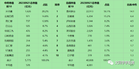上图:贵州茅台市值为片仔癀的14倍,行业之间的规模差距巨大