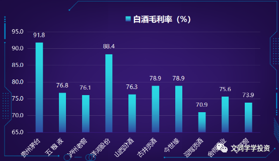 上图:白酒企业的毛利率都在70%以上,茅台更是高达91.8%!