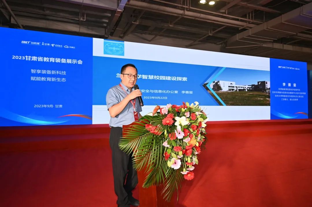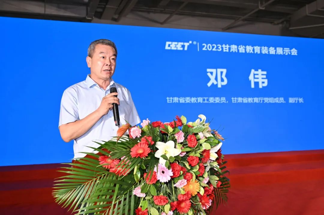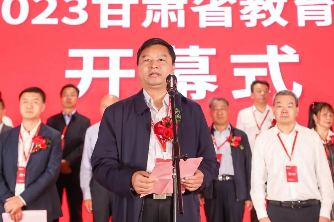 教育部教育技术与资源发展中心(中央电化教育馆)副主任赵宪志,甘肃省委教育工委委员,甘肃省教育厅党组成员、副厅长邓伟,中国电信股份有限公司甘肃分公司副总经理徐正桥,教育部教育技术与资源发展中心(中央电化教育馆)标准处处长刘强、中小学劳动与技术教育处处长沈芸,中国教育装备行业协会教育装备研究院常务副院长施建国,山东、陕西、宁夏、河南、河北、内蒙古教育装备部门的负责同志和行业协会会长,全省十四个市州、兰州新区教育局分管局长出席开幕式。甘肃省教育厅党组成员、副厅长邓伟致开幕辞。教育部教育技术与资源发展中心副主任赵宪志发表讲话并宣布开幕。甘肃省教育装备办公室副主任张斌财主持开幕式。