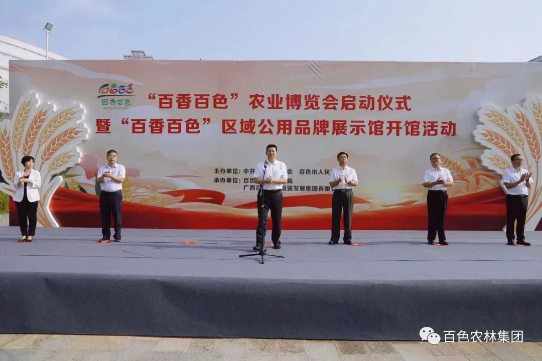 9月23日上午,“百香百色”农业博览会活动启动仪式暨“百香百色”区域公用品牌展示馆开馆仪式在百色市体育中心(二期)举办。市委副书记丘德彬出席仪式并宣布“百香百色”农业博览会活动启动、“百香百色”区域公用品牌展示馆开馆,市人大常委会副主任韦正业在开馆仪式上致辞,市委副秘书长兰亮主持。市委宣传部副部长赵堂高,集团公司党委书记、董事长陈汝雄,党委副书记、副董事长、总裁覃雪烟出席活动。