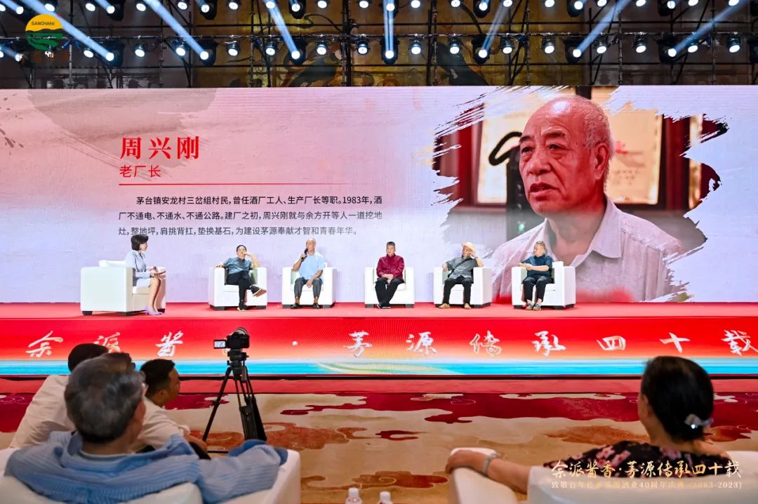茅源酒业40周年,正如一坛陈酿,历经岁月的洗礼,酝酿出了令人陶醉的故事。会议上,原仁怀县三岔酒厂创始合伙人李安强、原仁怀县三岔酒厂创始合伙人罗宏、余派酱香酒酿制技艺第九代传承人余方强、老曲师宋荣启、老厂长周兴刚分享自己与茅源酒厂的故事。