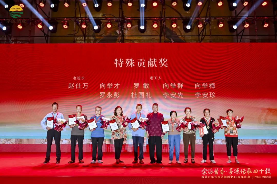 而为表彰在茅源酒业40载岁月峥嵘耕耘与付出的参与者及见证者,茅源酒业还特定颁发了“特殊贡献奖”“卓越功勋奖”“风雨同舟奖”等重磅大奖,感激每一位老工匠在茅源酒业发展40年中的陪伴与付出。