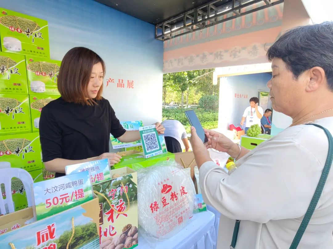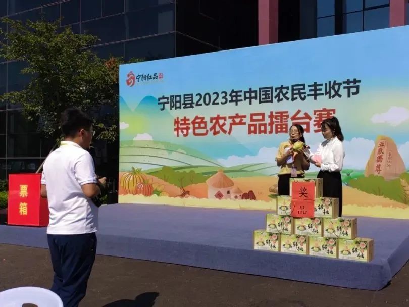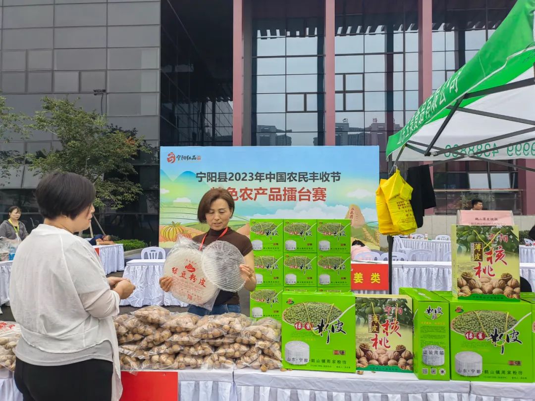 秋来稻菽千重浪,人间最喜是丰收。金秋的山东大地,流光溢彩,瓜果飘香,处处洋溢着丰收的喜悦。宁阳县庆祝2023年中国农民丰收节活动隆重开幕,活动现场,鹤山镇绿豆粉皮、薄皮核桃、汶河鸭蛋、金麦香小麦胚芽、王卞大米、阳光玫瑰葡萄、山农酥梨等特色农产品参加展销,深受大众欢迎。
