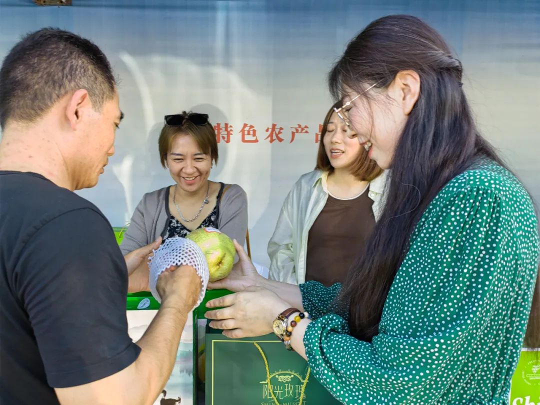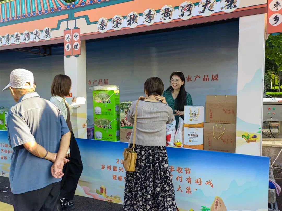 在鹤山镇农产品展区,薄皮核桃、汶河鸭蛋、小麦胚芽、王卞大米、山农酥梨等农产品如数展示,琳琅满目的果实引得群众驻足围观、纷纷品尝,有的当即下单购买。活动开始以来,展台货物每天都是销售一空,生意火爆。