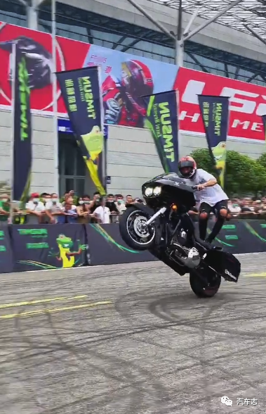 也有非常生猛的女骑,比如下面这位川F女骑起步烧胎,翘头出场,压弯磨膝,一路火花带闪电,非常飒。她所驾驶的摩托车是凯越321RR,指导价22980-28180万元,搭载320cc双缸水冷发动机,最大功率为29KW和30.5KW。除了生猛女骑,还有哈雷滑翔翘头、摩托车特技表演等等诸多项目,非常精彩。网红女骑@荆棘队长也出现在了摩博会,被网友抓拍到了。可以看到荆棘队长还是网友们熟悉的装扮,她所驾驶的是被网友戏称为“本田小板凳”的NCZ50Motocompo,1981年推出,整备质量45千克,使用一台0.059L两冲程风冷发动机驱动,最大功率2.5马力,最高时速可达60公里/小时,“小板凳”折叠后还可放进家用车后备箱。(视频来自@| ZI FU |子夫宅空间)