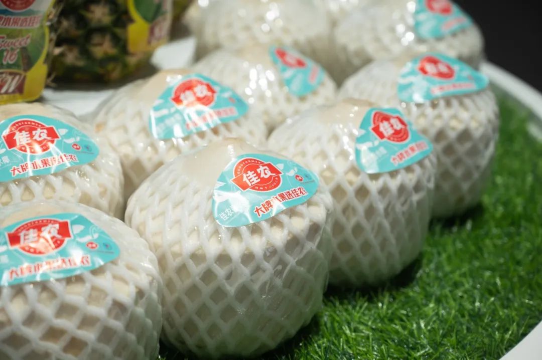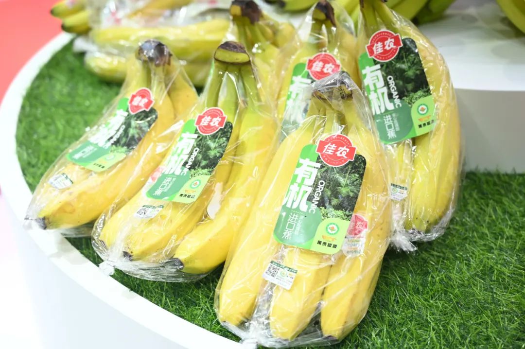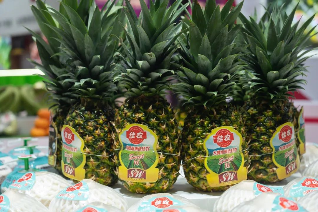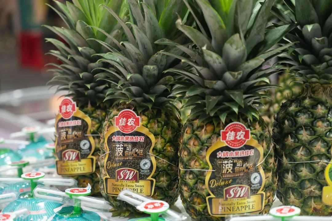 本次展会中,佳农甄选全球10多个优质产地,实力集结近50种高品质鲜果。不仅包括了佳农厄瓜多尔有机香蕉、黑钻凤梨等王牌产品,更有佳农黄金菠萝、佳农榴莲、佳农易开椰、佳农火龙果、佳农贵妃球、佳农阳光玫瑰、佳农苹果等畅销明星单品,一次性召唤各大洲的水果美味,多维度展现了佳农全线产品优势,也满足了消费者多品类、多元化的需求。佳农厄瓜多尔有机香蕉生长在南美洲西北部的热带雨林黄金地带,口感更浓郁香甜。而佳农黑钻凤梨则高甜无渣,口感脆爽,完全成熟后的果糖含量高达16度,远高于普通品种。这两款产品一经上市就备受各市场的青睐, 相信此次也必将会实现从“展品”到“商品”再到“爆品”的进化。