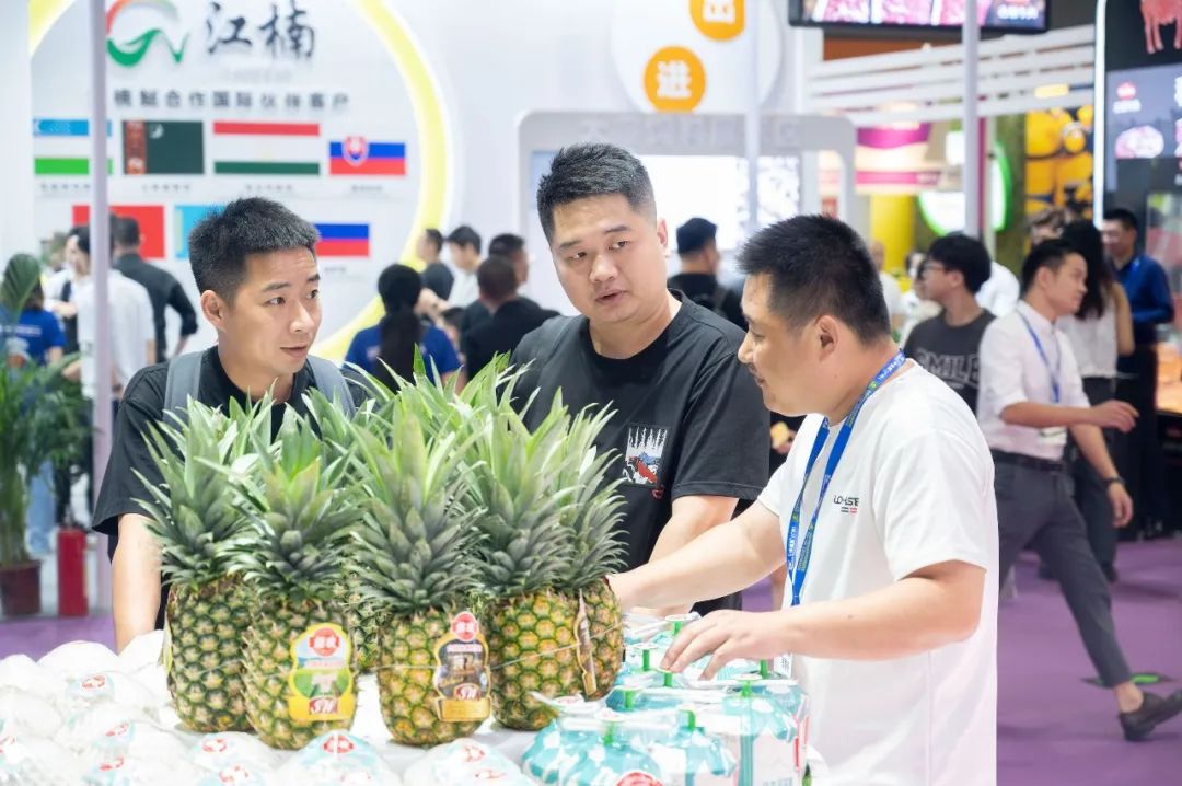 佳农展台自第一天开馆以来,人气便十分高涨。现场果香四溢,引得观众们频频驻足观摩。丰富多样的佳农展品也吸引了世界领先的水果种植商、品牌商、合作伙伴等前来参观、交流行业最新资讯,洽谈合作业务。