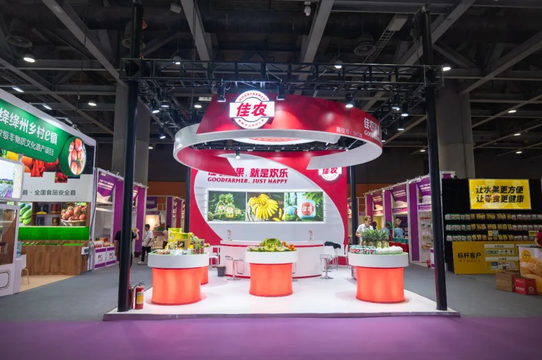 开展当天,佳农的展台在众多果蔬展台中独具特色,一抹靓丽的中国红传递了其热情与活力,也代表着佳农对果蔬行业的热爱。聚合之顶的一贯设计再次突显了佳农水果业务的全面性。