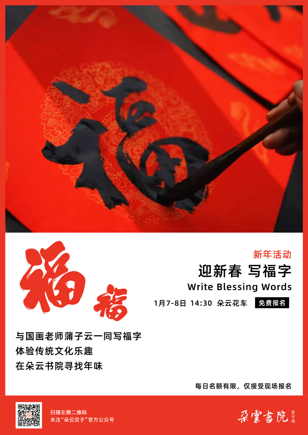 朵云书院·交子店特别策划新年活动季,在新春佳节即将到来之际准备了多场特别活动,品味浓浓年味,欢迎到店参与。