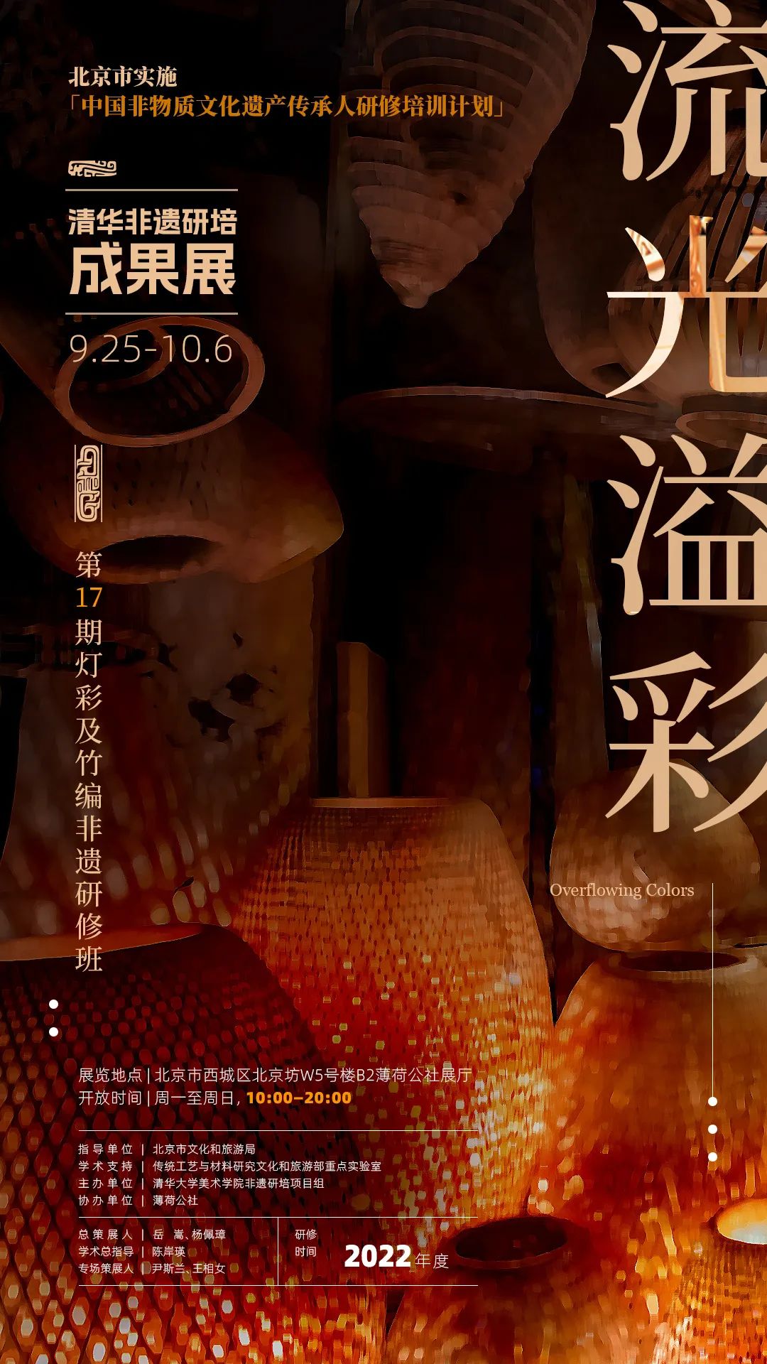 本次研修由陈岸瑛、杨佩璋和岳嵩三位老师担任项目负责人,由尹斯兰负责项目执行,由传统工艺与材料研究文化和旅游部重点实验室提供学术支撑。第16期传统首饰设计非遗研修班,结合漆艺和金属工艺,设计研发具有东方神韵的饰品。第17期灯彩及竹编非遗研修班,为灯彩和竹编技艺传承人搭建交流合作平台,提升灯彩制品质量,丰富竹编工艺应用领域。