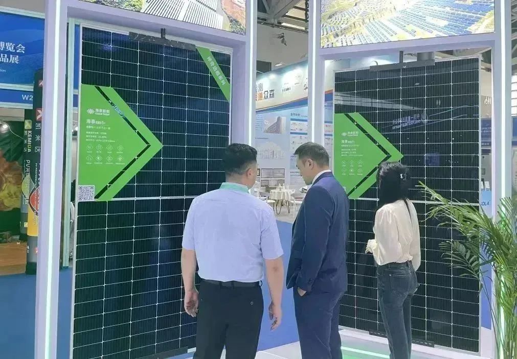 本次大会,海泰展出的泰合2.0系列高功率组件,搭载了目前主流的TOPCon电池技术,拥有双面率高、可靠性高、低衰减、弱光性能优异、温度系数低等优势,能广泛适应不同场景,为客户带来更高的发电效率和收益。