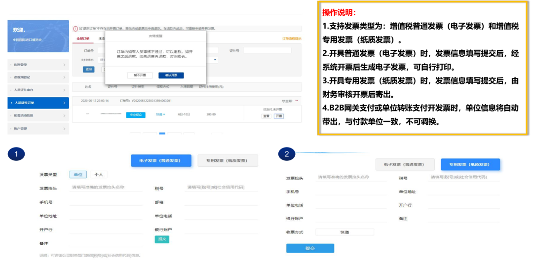 注:B2B网关支付或单位转账支付开发票时,单位信息将自动带出,与付款单位一致,不可调换)