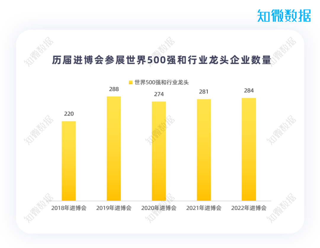 2022年第五届进博会,共有284家世界500强和行业龙头企业参展。