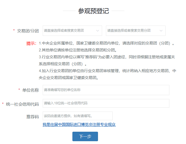 3、参会单位或个人对所填报的单位和个人注册信息的真实性负责,请谨慎填报。同时境内单位须根据注册地或隶属关系选择相应交易团(分团)。