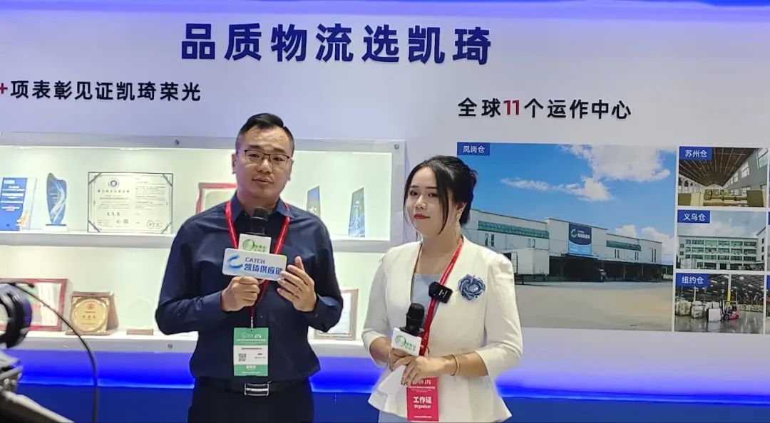 凯琦以特邀参展商身份出席大会,展示企业理念与服务成果的同时,凯琦供应链创始人冯麟勇、营销副总裁邓清辉、业务总监刘志清均来到现场,以演讲、直播、访谈等形式与现场媒体/友商/观众交流,共同探讨跨境物流发展新趋势。