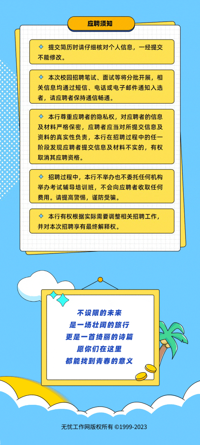 网上报名。应聘者请注册并登录中泰证券官方招聘网站(zts.hotjob.cn),或关注“中泰证券招聘”官方公众号,在线填写个人简历,完成职位申请。本次招聘报名时间自公告发布之日起至2023年9月28日17:00。