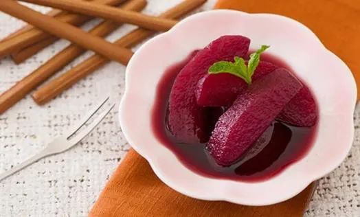 做法:先将梨洗干净,去皮留用,将梨皮和切成块的梨加入锅子里,加入丁香、肉桂、陈皮,再倒入红酒,不需要没过食材,中小火(开盖烧,以便挥发掉酒气),煮5-10分钟(过程中自己观察),煮到红酒快收干关火即可,喜欢吃热的人可以热食,也可以放凉再食。