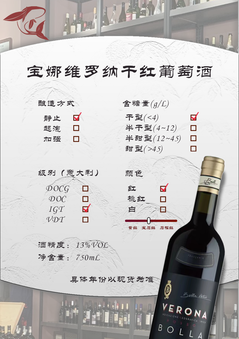 宝娜维罗纳干红葡萄酒/