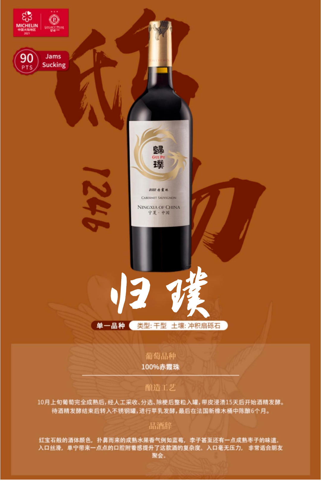 归璞-鸱吻赤霞珠产自宁夏贺兰山东麓地区,该产区屡获大奖,是与法国波尔多产区一样同属北纬37°-39°的高品质葡萄酒产区,为国内外知名的酿酒葡萄和葡萄酒产区之一。其优越的地理、气候、日照、土壤等风土条件,为孕育高品质的葡萄酒创造了佳机,赋予了本产品更具个性的口感与风味。