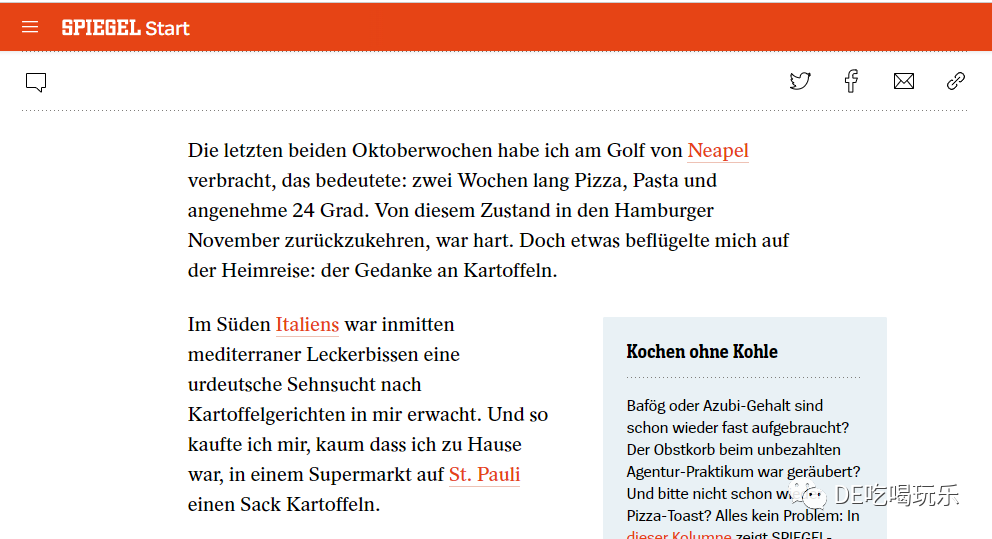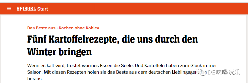 用德国朋友的话说,没有土豆的正餐就不是正餐,这大概也是德国人的共识。比如这位《明镜周刊》的特约美食专家就最近的文章就是佐证。