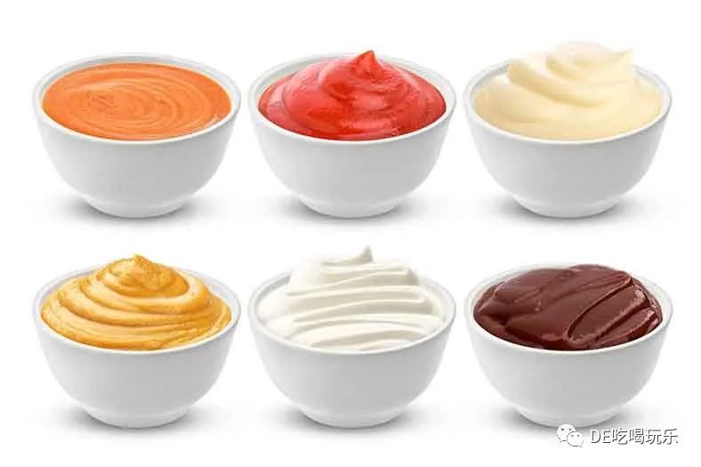 就蘸的酱来说,有Ketchup(番茄酱)、Mayonnaise(蛋黄酱)、Remoulade(辣味的蛋黄酱)、Currysauce(咖喱酱)、Barbecuesauce(烧烤酱)等等。