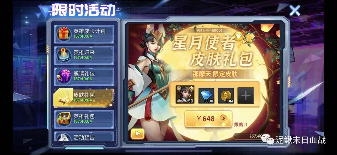 本次英雄自选礼包:那摩天,海拉伯爵,艾芙琳,爱得利,本次礼包哪吒再次进648,氪老玩家一定会买,第二个完全体可以做出来了