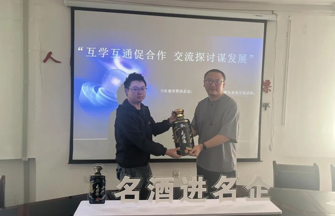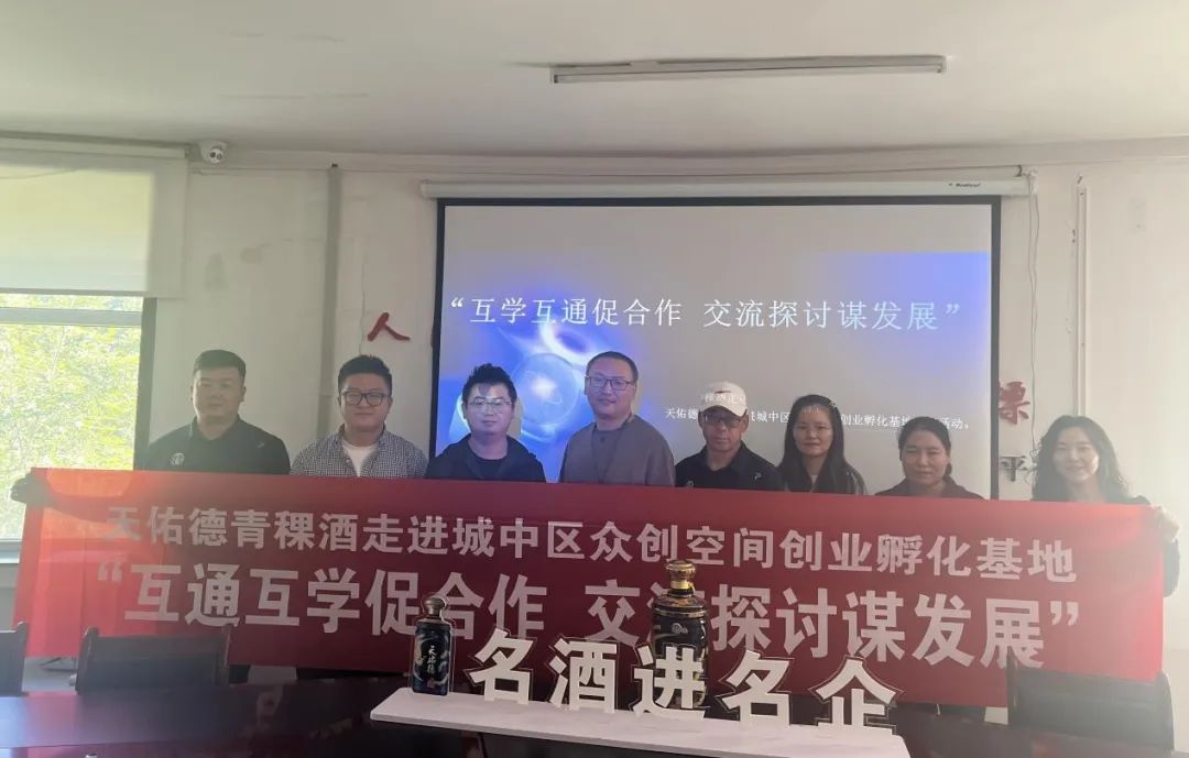 座谈会上,青海西宁城中区众创空间创业孵化基地对天佑德青稞酒公司一行的到来表示热烈欢迎。青海西宁城中区众创空间创业孵化基地经理郭宇昊对城中区众创空间创业孵化基地主营业务做了详尽的讲解。天佑德青稞酒公司高级讲师刘倩倩对天佑德青稞酒的发展历程做了详细的讲述;双方围绕产品、市场、营销等层面的合作以及深度融合发展进行了深入交流和探讨。青海西宁城中区众创空间创业孵化基地表示对我公司产品非常认可。天佑德青稞酒公司作为中国上市白酒企业之一,在此次名酒进名企系列活动中,送出了国之德产品以供品鉴收藏,传递着天佑德青稞酒公司对自身品质的信心,以及与企业之间开展深度合作的诚意。