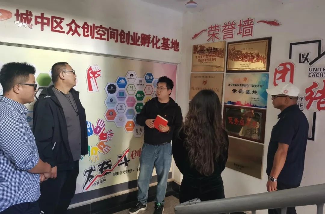 在青海西宁城中区众创空间创业孵化基地经理、青海智谷科技有限公司总经理郭宇昊的带领下天佑德公司一行参观了青海西宁城中区众创空间创业孵化基地。