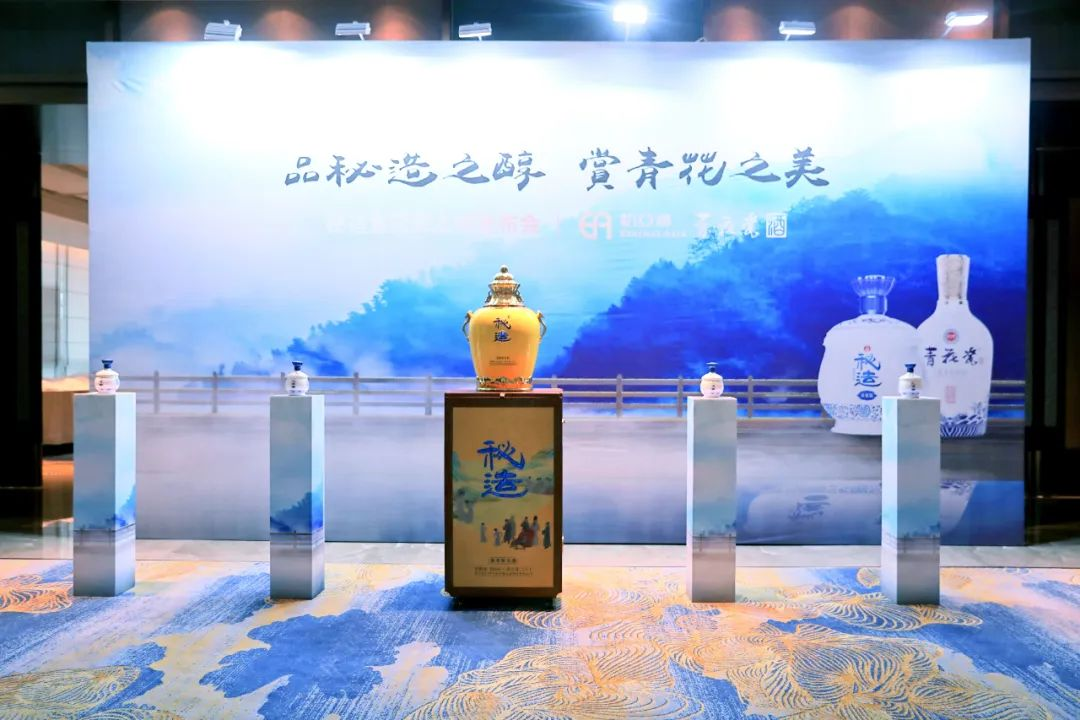 随后,现场参会领导共同为新品揭幕,隆重推出并发布“秘造”系列产品,包含酱香型秘造与清香型秘造两大品类,单从瓶身的设计不难看出,酱香型秘造主打国潮风与传统文化概念,旨在从历史文化入手,唤起人们文化自豪感的同时,积极培育消费心理偏好;清香型秘造则在延续青花瓷酒品牌风格的基础上大胆创新,旨在进军清香市场,树立清香品类新标杆。