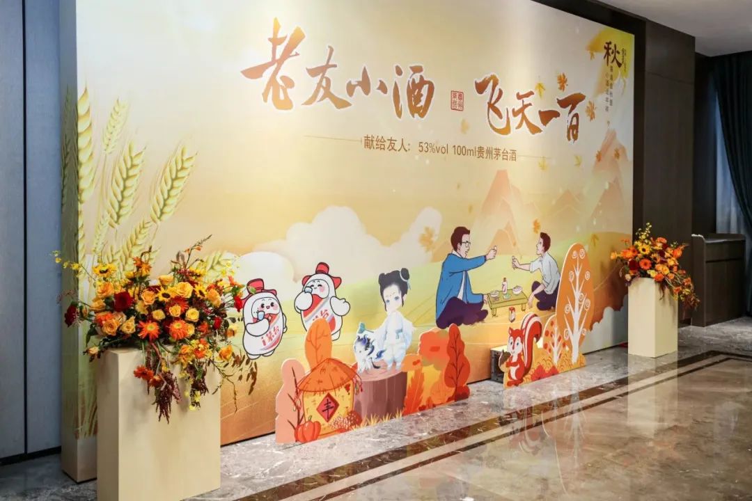 秋分对于茅台而言,有着十分美好的寓意,秋分时节,昼夜平分、阴阳协调,正是茅台匠人尊崇和追求的平衡之美。活动现场以秋日暖色作为主基调,以茅台“友”文化为主题,将秋分时节之美与茅台文化元素相融创新,聚焦茅台美学,营造出温馨安逸、美意十足的活动氛围。