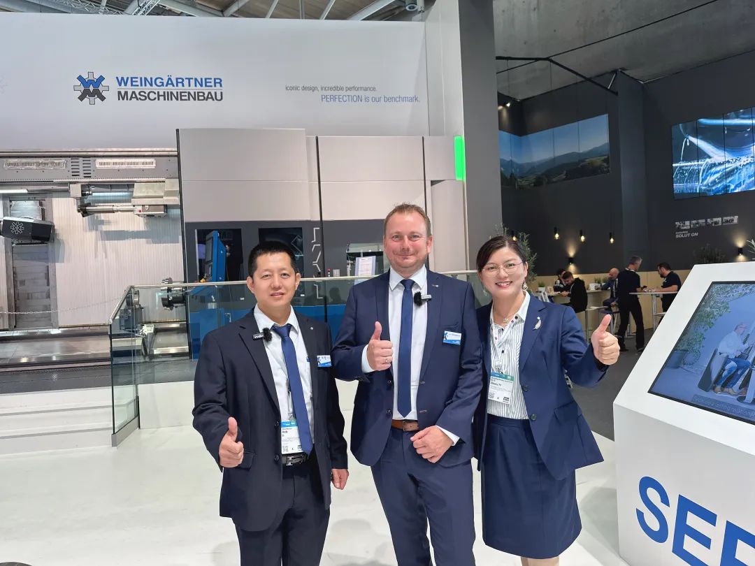 魏因加特纳提供远程监控及协助、现场维修、培训和知识转让、维护和翻新等服务,魏因加特纳公司 (Weingärtner)售后服务部经理 Roland Reisenberger 先生和中国区销售经理李文增先生正在介绍详细全球售后服务。