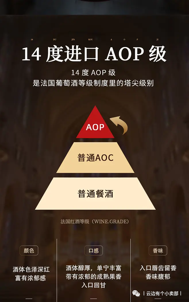 AOP红酒是法国红酒等级中最高的一级,属于顶级酒