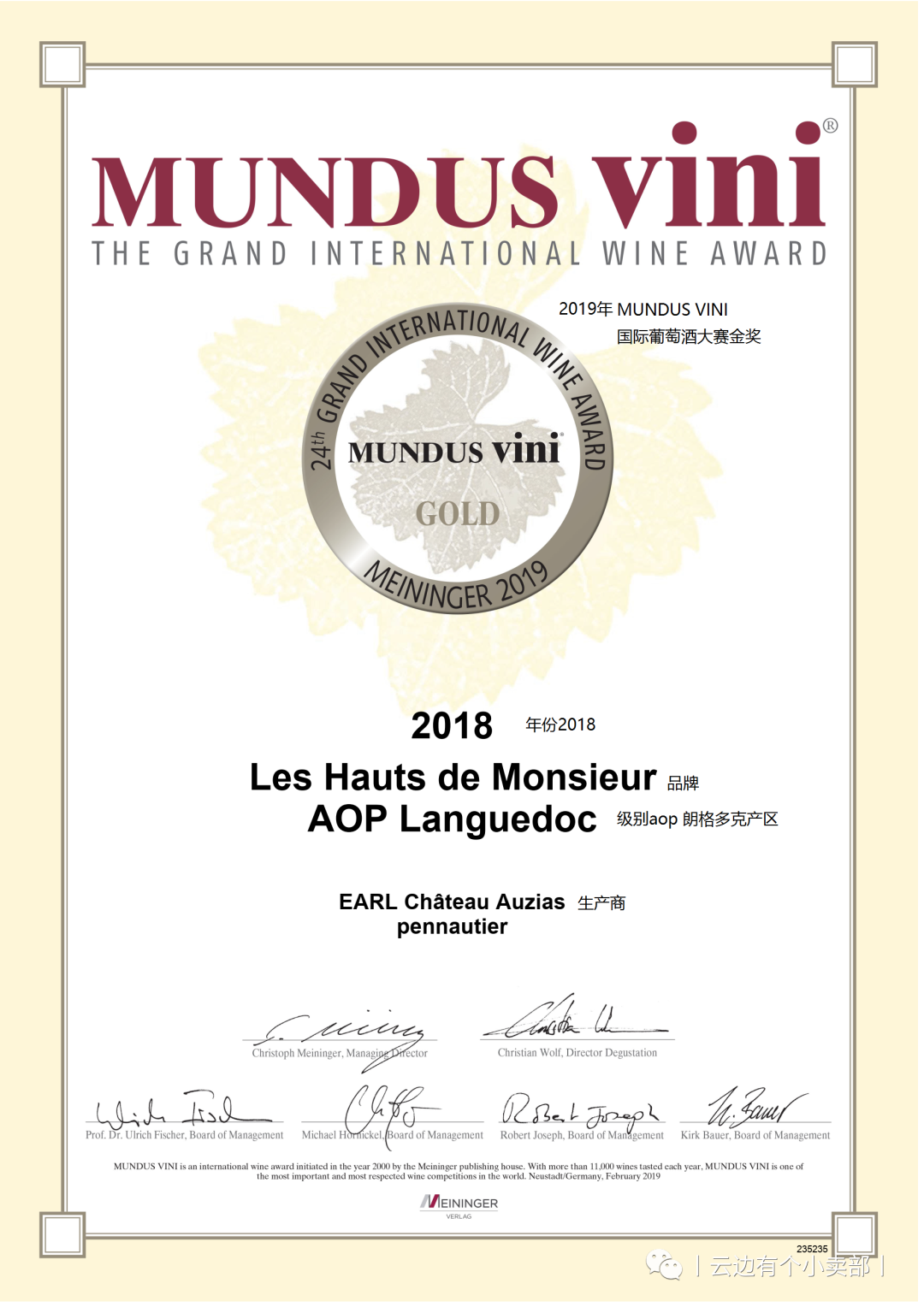 ?MUNDUS VIN国际葡萄酒大赛金奖