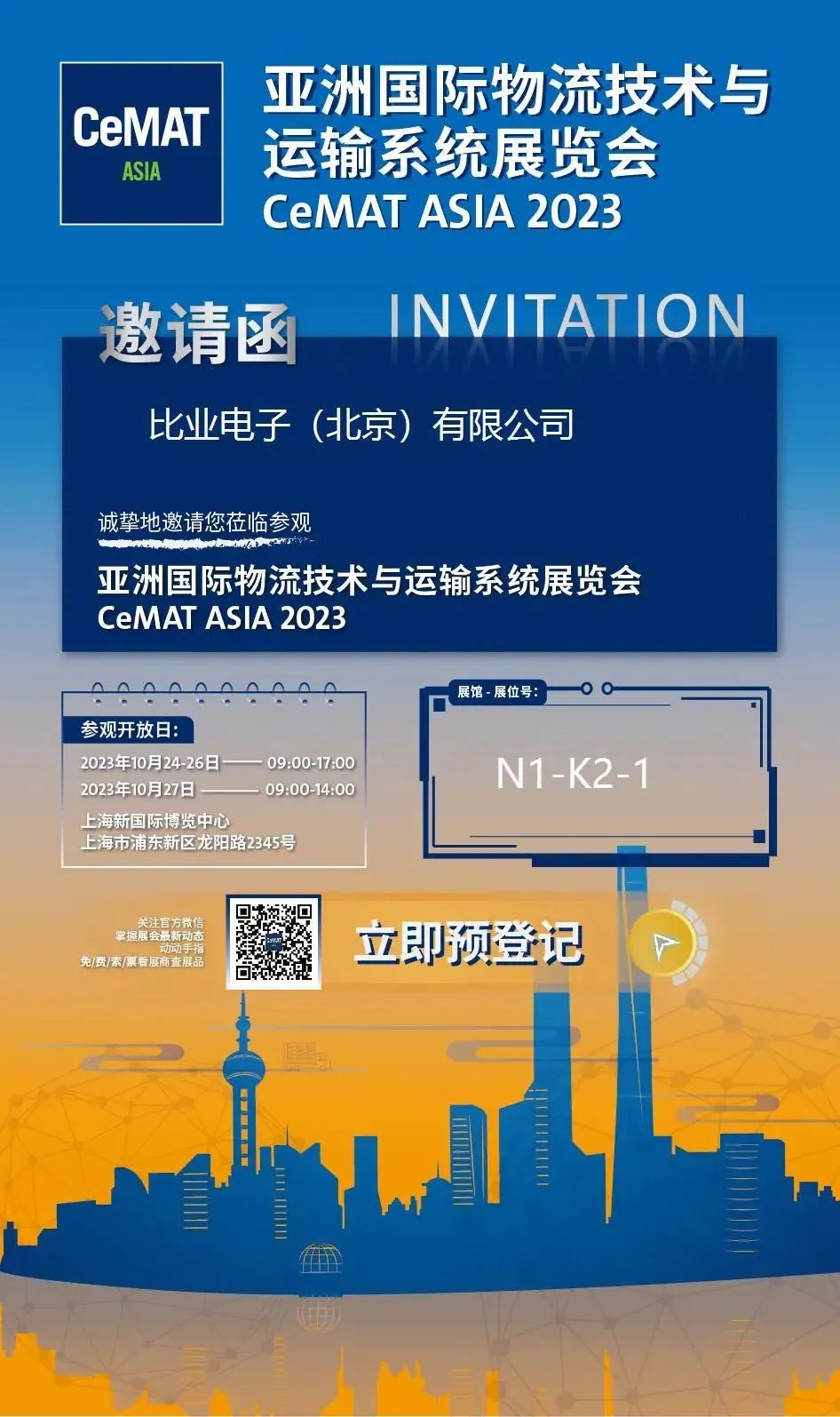 10月24-27日,上海新国际博览中心N1馆K2-1 BEA展位,期待您的莅临!